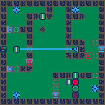 - Objects that move (can be pushed) are usually outlined in a dark blue color (including lasers, and crystals)
